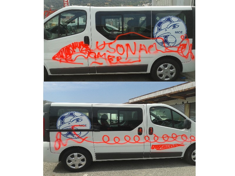 Les minibus du club, en stationnement dans un parking sous surveillance, ont été tagués dans la nuit de jeudi à vendredi 3 Août 2012. Une mauvaise nouvelle pour ces deux véhicules acquis depuis six mois, au terme de trois ans de dossiers et de procédures pour obtenir leurs financements. Le club regrette que ces véhicules, mis à disposition pour les joueuses et joueurs dont les familles n'ont pas la possibilité d'accompagner leurs enfants lors des matchs et tournois les weekends, subissent ces actes de vandalistes condamnables.