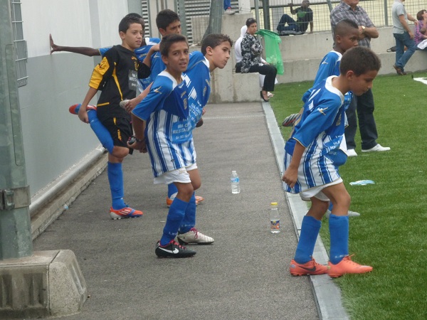Les U11 à l'échauffement avant de jouer l'ES Contes