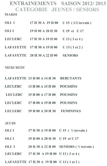 A la reprise des entraînements, programmé le 21 Août 2012, 3 jeunes étaient présents. Il n'y en avait pas plus le 23, le 28 et le 30 Août 2012.